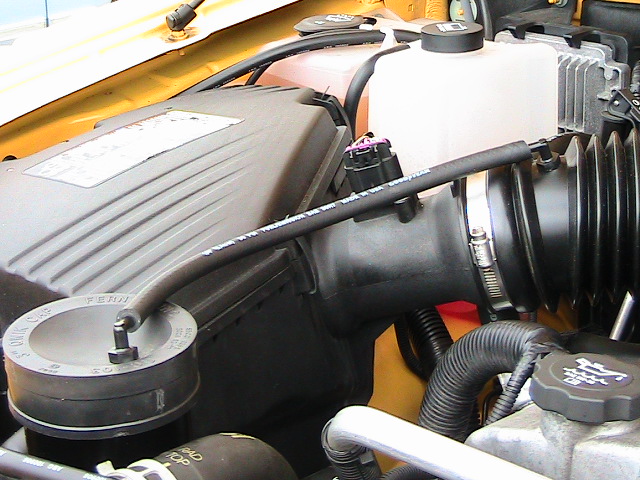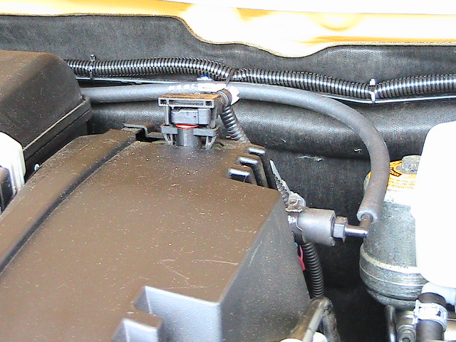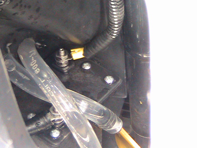 This is a picture of the vacuum hose connection on the motor. The vacuum pressure of the engine is used to turn the PEC generator "on and off".
